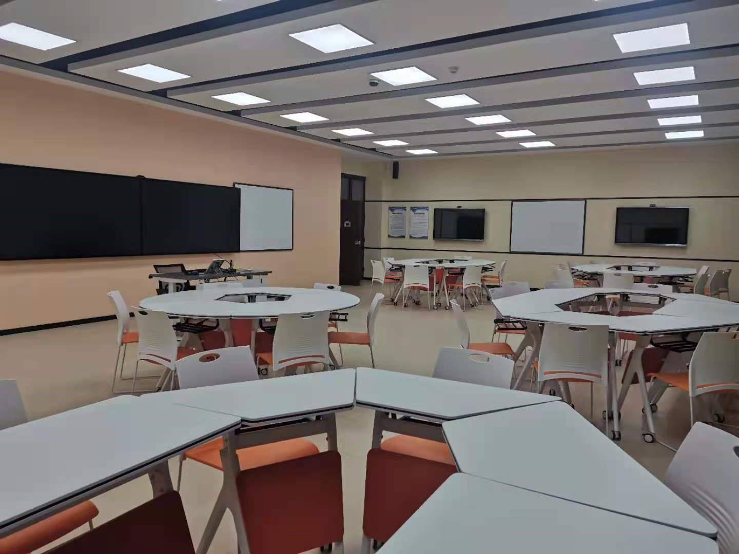 智慧教室是一种新型的教育形式和现代化教学手段,智慧教室引入了空间设计理念,通过灵动式桌椅带来空间布局的变化,灵活、科学的布局支持协作学习的课堂互动,使学生与教师之间产生平等感,强调要“以学生为主体、以教师为主导”,开展讨论式、启发式、参与式教学,建立基于探索和研究的教学模式,营造有助于学生发挥自己的想象力和创造力的学习氛围,支持多种教学模式。
