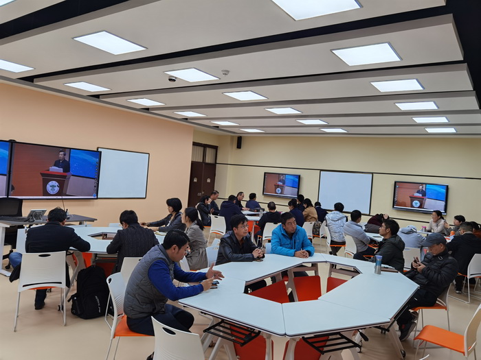 我校组织教务处分管副处长、教研科工作人员、二级学院负责人、专业带头人、教研室负责人、教指委委员共48人分别在12教智慧教室103参加一流本科课程建设经验分享会、12教智慧教室101参加教学成果奖培育与申报经验分享会。两个会议均以线上视频直播方式进行,老师们通过远程方式即可参加高级别、高水平会议,在不出校门的情况下获得更多、更好的学习机会,促进专业和学术能力、水平的提高。