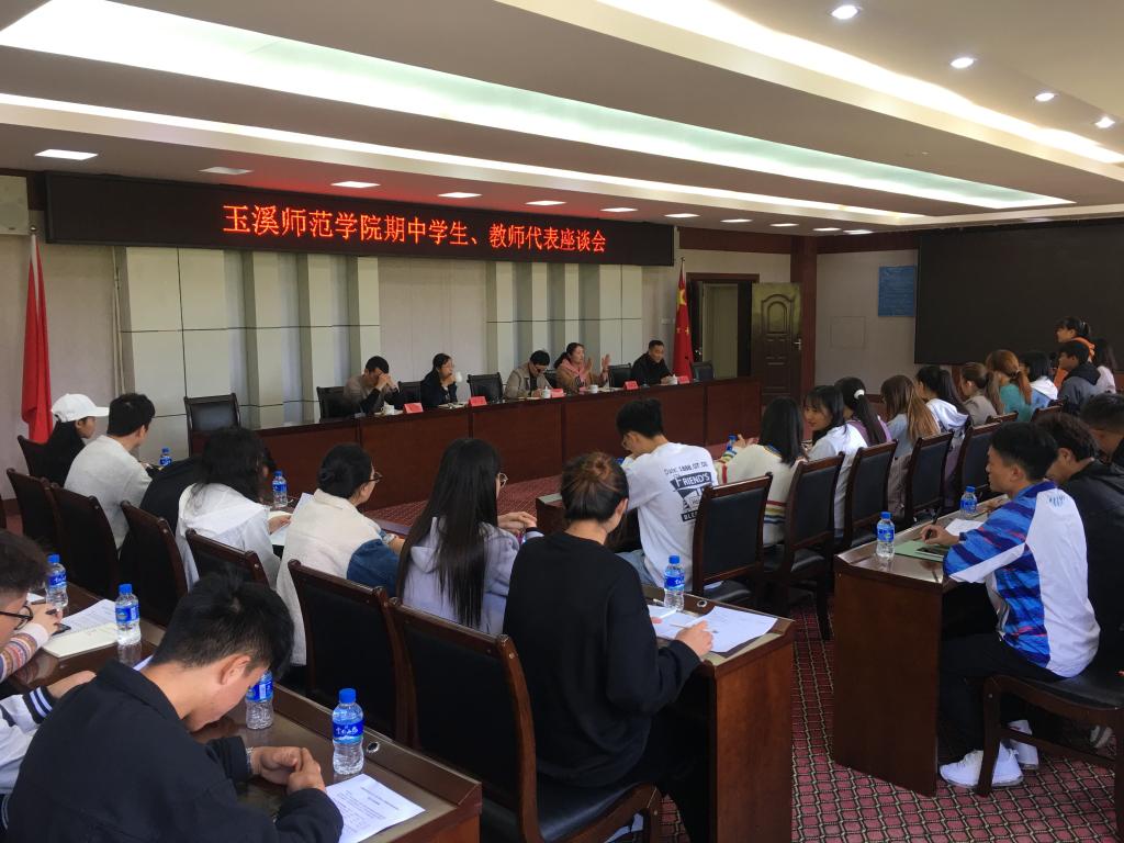 根据工作安排,2021年11月11日星期四下午在图书馆3003会议室召开2021-2022学年上学期期中学生、教师代表座谈会,本次座谈会分为两个阶段,第一个阶段14:30分是各学院每个专业学生代表座谈,第二阶段16:00为各学院教学副院长和教师代表座谈。教务处副处长、学生处、人事处、后勤服务中心主要负责人;高等职业技术学院执行院长、体育高等职业学院执行院长参加了座谈会,会议由章新副校长主持。