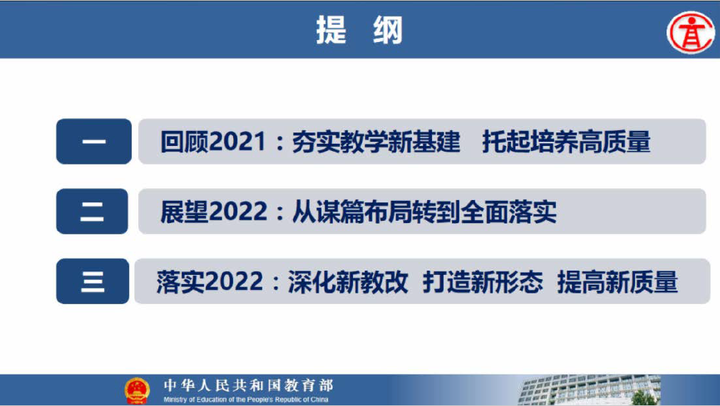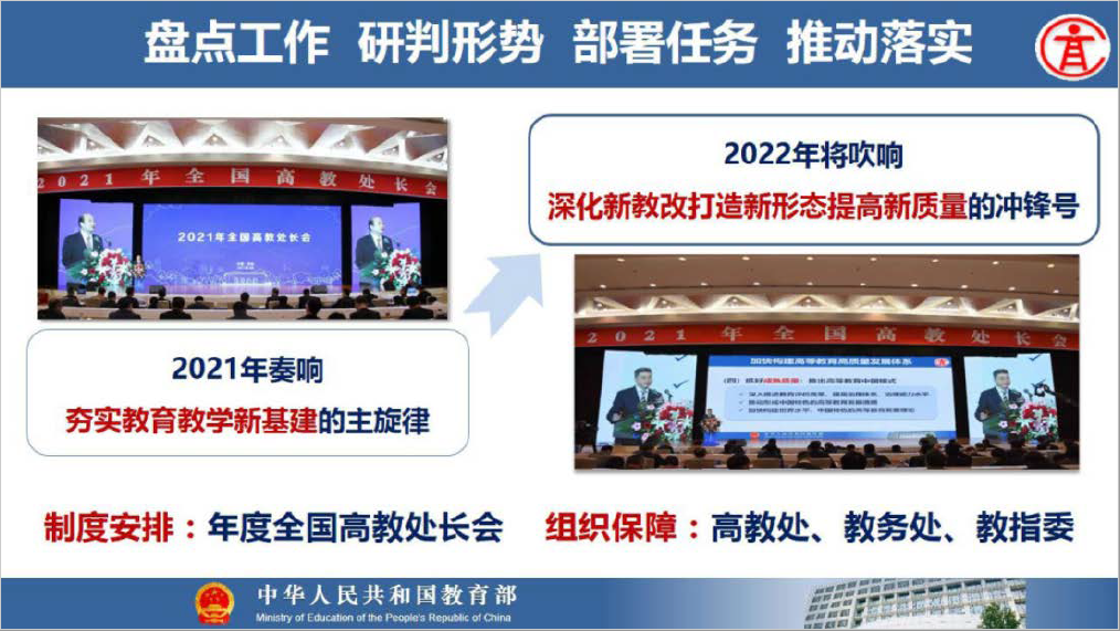 2022年全国高教处长会上,教育部高等教育司司长吴岩作题为《深化新教改 打造新形态 提高新质量》的主题报告。报告系统总结了2021年高等教育在“新工科、新医科、新农科、新文科”建设、课程思政建设、中西部高等教育振兴、优化学科专业结构、紧缺人才培养等方面的工作成效。报告指出,“四新”建设从顶天的战略变成落地的策略,正逐步改变中国高等教育的样貌,中国本科教育开始出现格局性的变化。