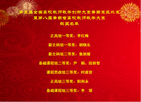 经过激烈的校级选拔赛,共有311项优秀作品脱颖而出晋级省级比赛,最终93名佼佼者成功入围现场决赛。玉溪师范学院推荐9名教师参加比赛,其中5名教师入围省级决赛,3名教师在省级初赛中获奖;最终8名教师喜获佳绩。与上届创新大赛相比,我校在省级决赛中的人数比例和获奖人数比例均有显著提升,获奖等级也有了明显提高。