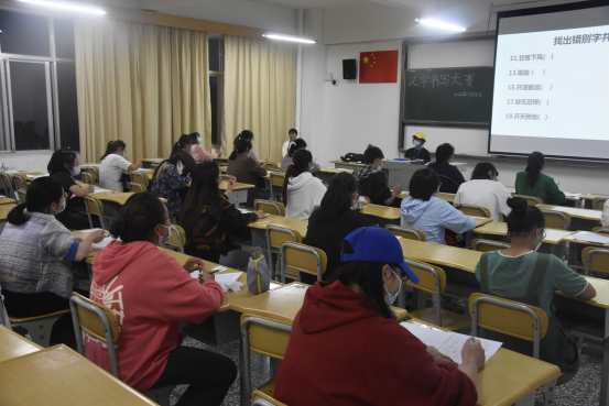 推普周系列活动于9月14日至16日开展,为创建良好的语言文字环境,向全校同学征集了推普标语,进一步渲染了推普氛围。汉字书写大赛于9月14日19:00在13教310和311举行,参赛选手按随机抽取座位号的方式进入考场,比赛以PPT方式展示题目,选手将答案写在试卷上的形式进行。比赛过程中,选手们落笔轻重有道、结构疏密有理,表现非凡。