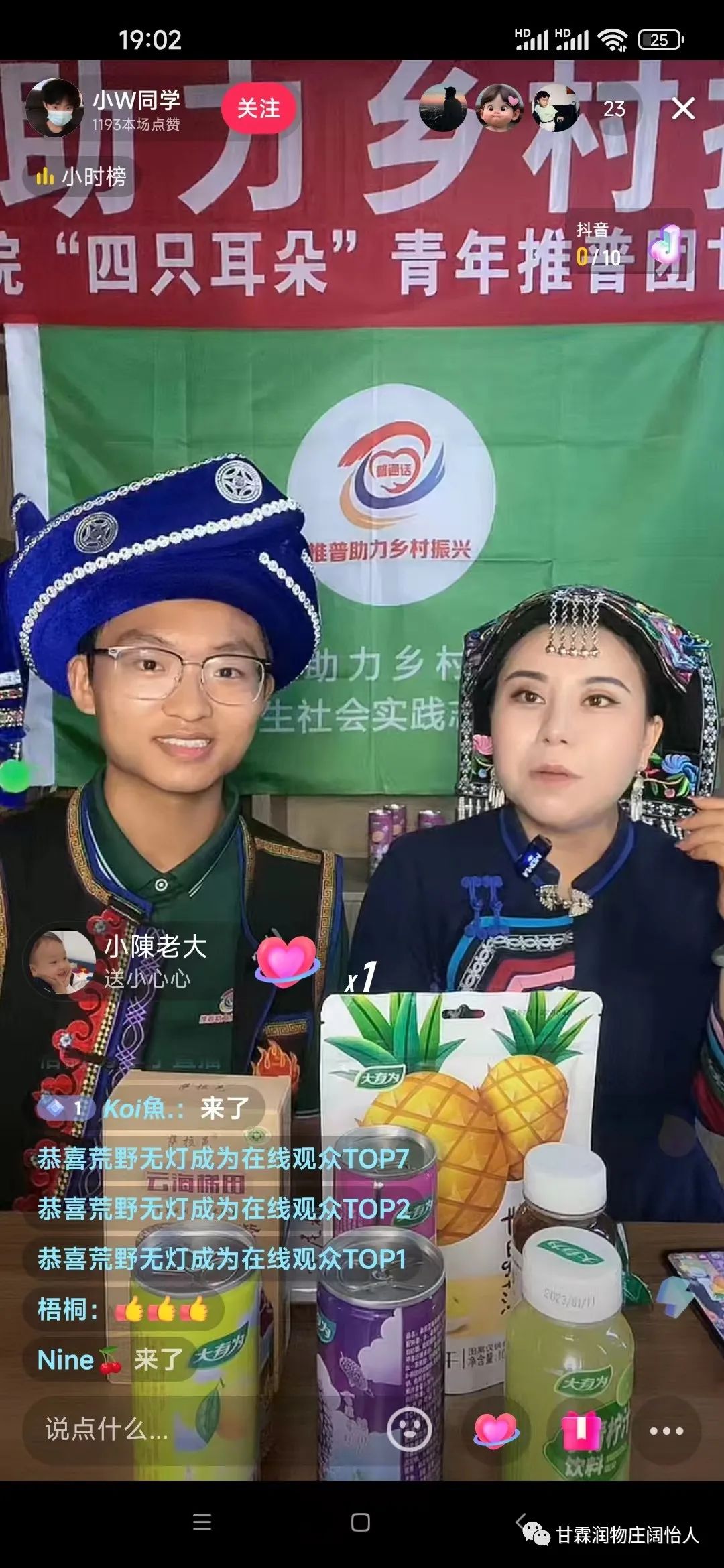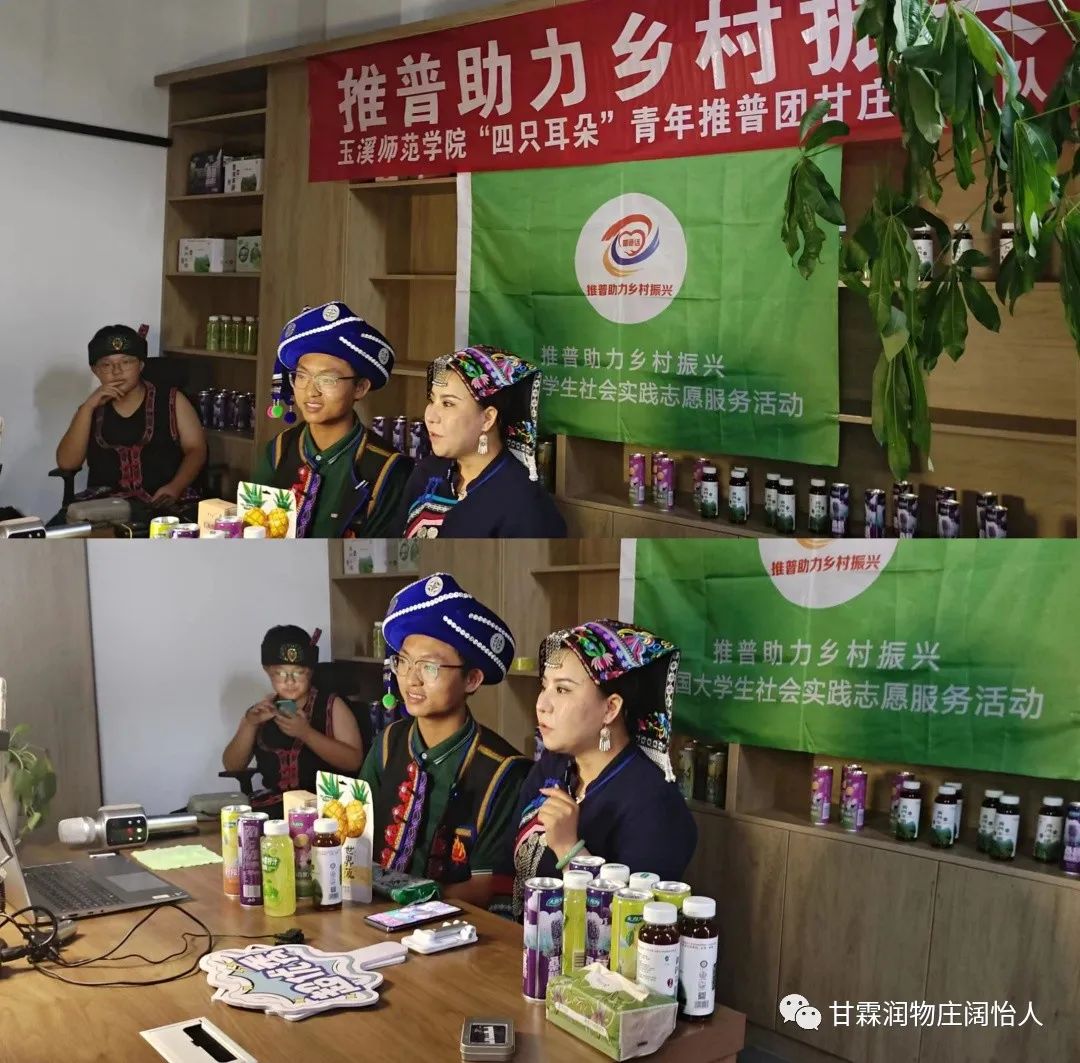 青年推普团和甘庄街道宣传文化服务中心一起,在元江火车站站前广场游客街道中心开展助农直播,宣传甘庄历史文化、人文风情、自然资源等,推销农特产品,助力乡村振兴。