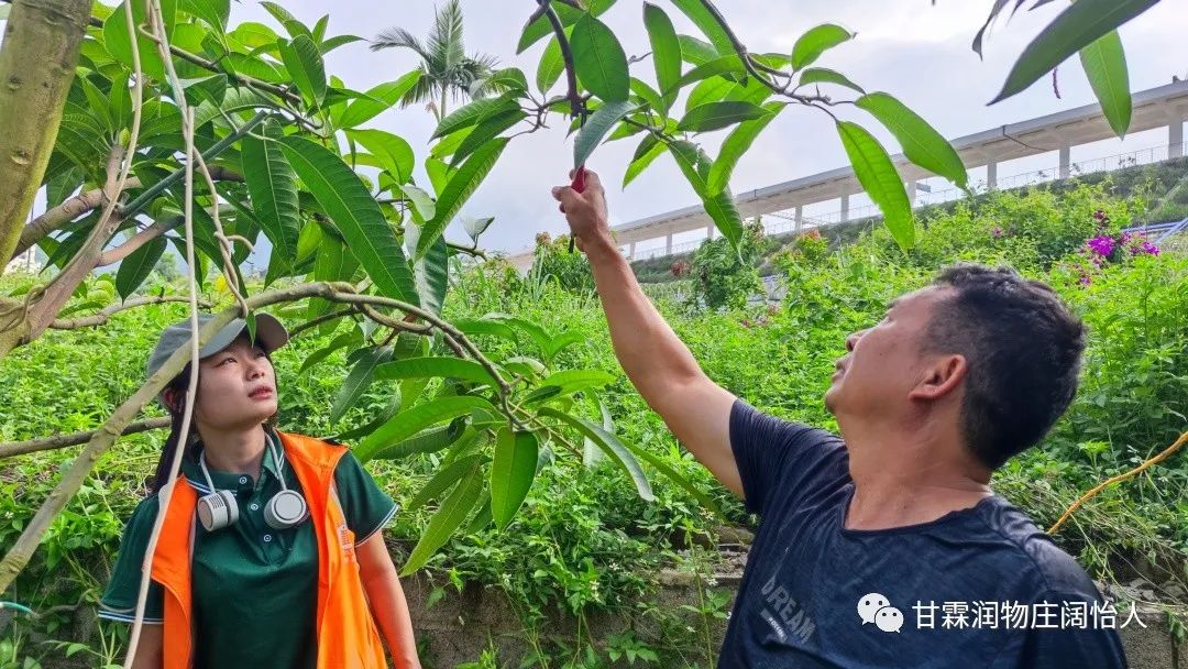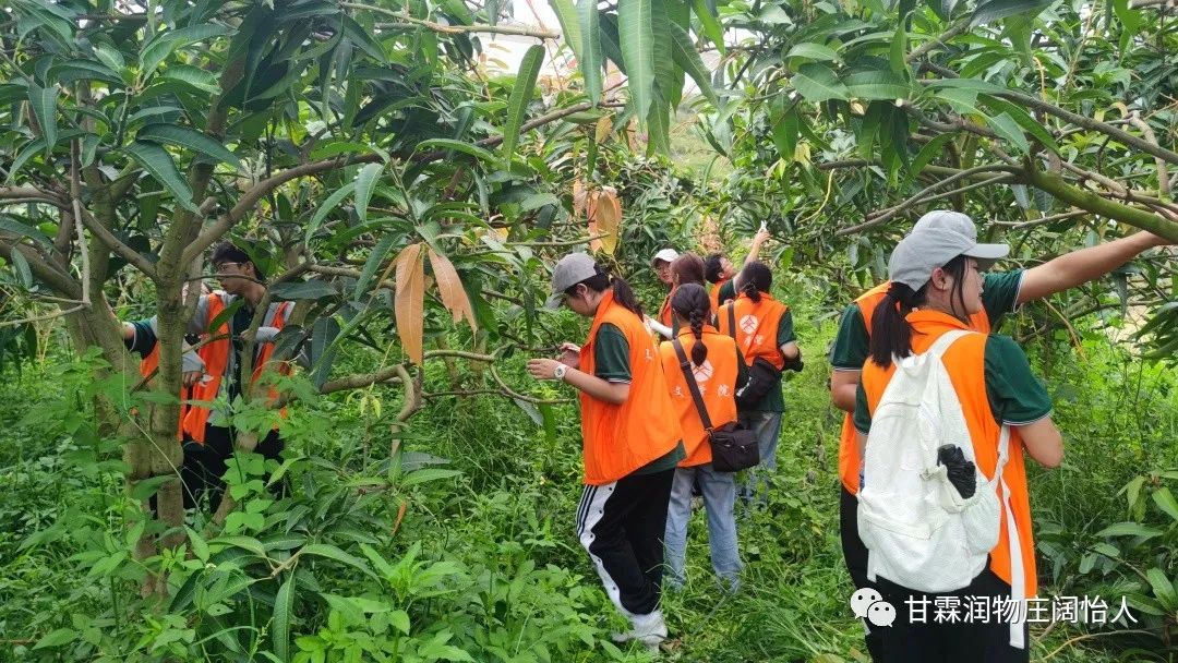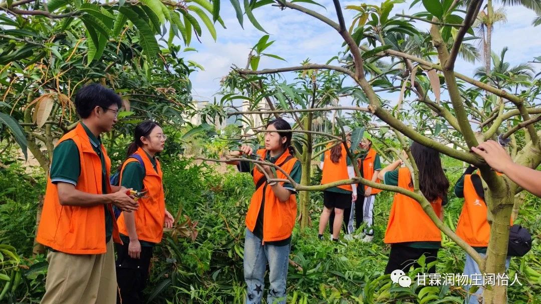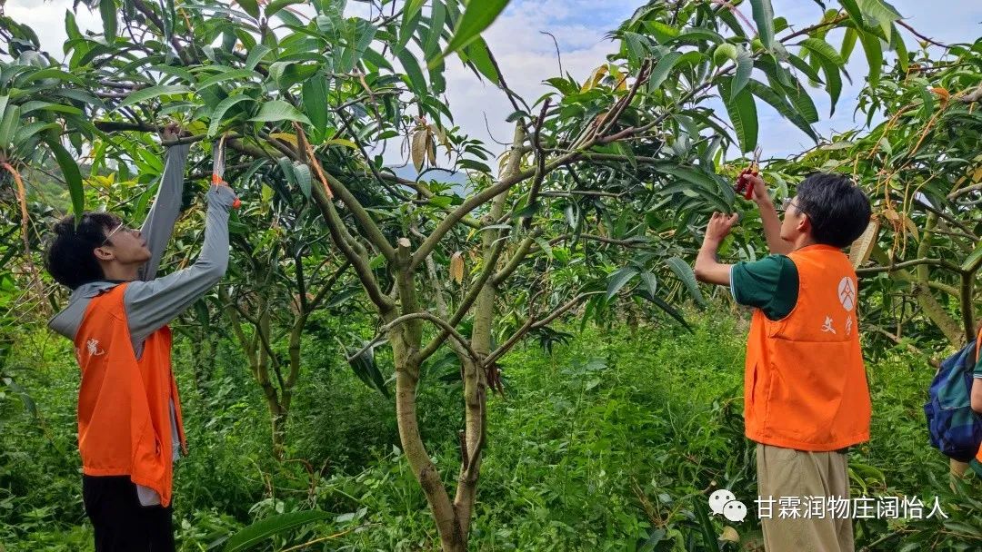 青年推普团成员们来到芒果园里开展社会实践,认真学习芒果修枝的技巧,帮助果农修枝,真正深入基层、亲近群众、了解三农。在劳作的间隙推广普通话,拍摄宣传短视频。