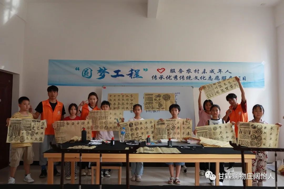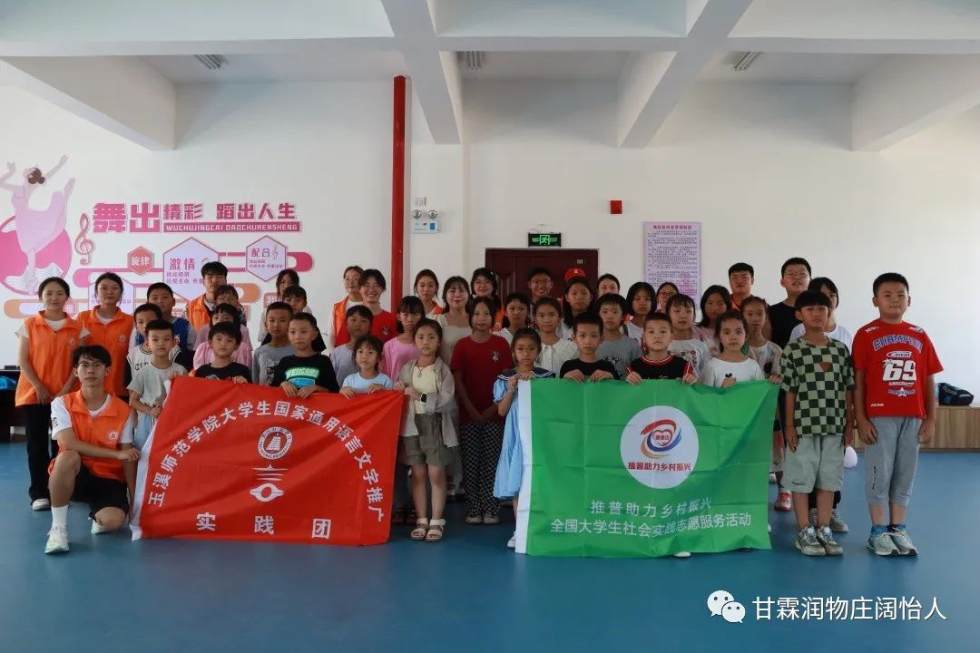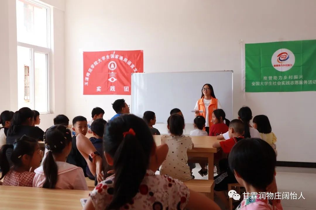 推普团举办假期辅导班,为甘庄街道的小学生们开展推普小课堂,推广普通话、宣传红色文化,教授书法、手工、音乐、广播剧等课程,丰富小学生们的暑假生活,帮助指导孩子们完成暑假作业。