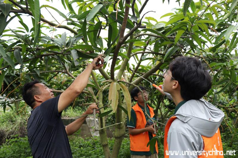 7月21日,“四只耳朵”青年推普团来到当地果园学习芒果树修剪,在共同劳作中,与果农拉近距离,将普通话推广到田间地头。叔叔为推普团成员做了修剪示范,耐心地指导成员们如何修剪,认真回答大家的每一个提问。紧接着,成员们就拿着工具开始自行操作,在叔叔的悉心指导下,成员们很快就掌握了修剪要领,逐渐能够正确修剪。