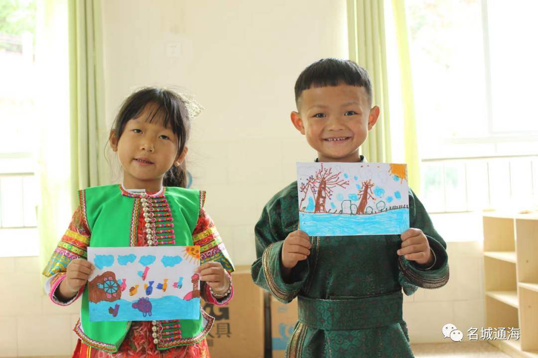 在兴蒙蒙古族自治乡中心幼儿园,“萤火虫”推普实践团选取幼儿生活中常见的物品、图片作为活动材料,开展“你说我猜”、自主构想绘本内容等互动游戏,鼓励幼儿想一想、画一画、演一演、说一说,向在游戏中积极互动的幼儿提供示范引导培养,培养幼儿讲普通话的习惯,让幼儿的回避发言,声音较小、口齿不清晰等情况得到充分改善。