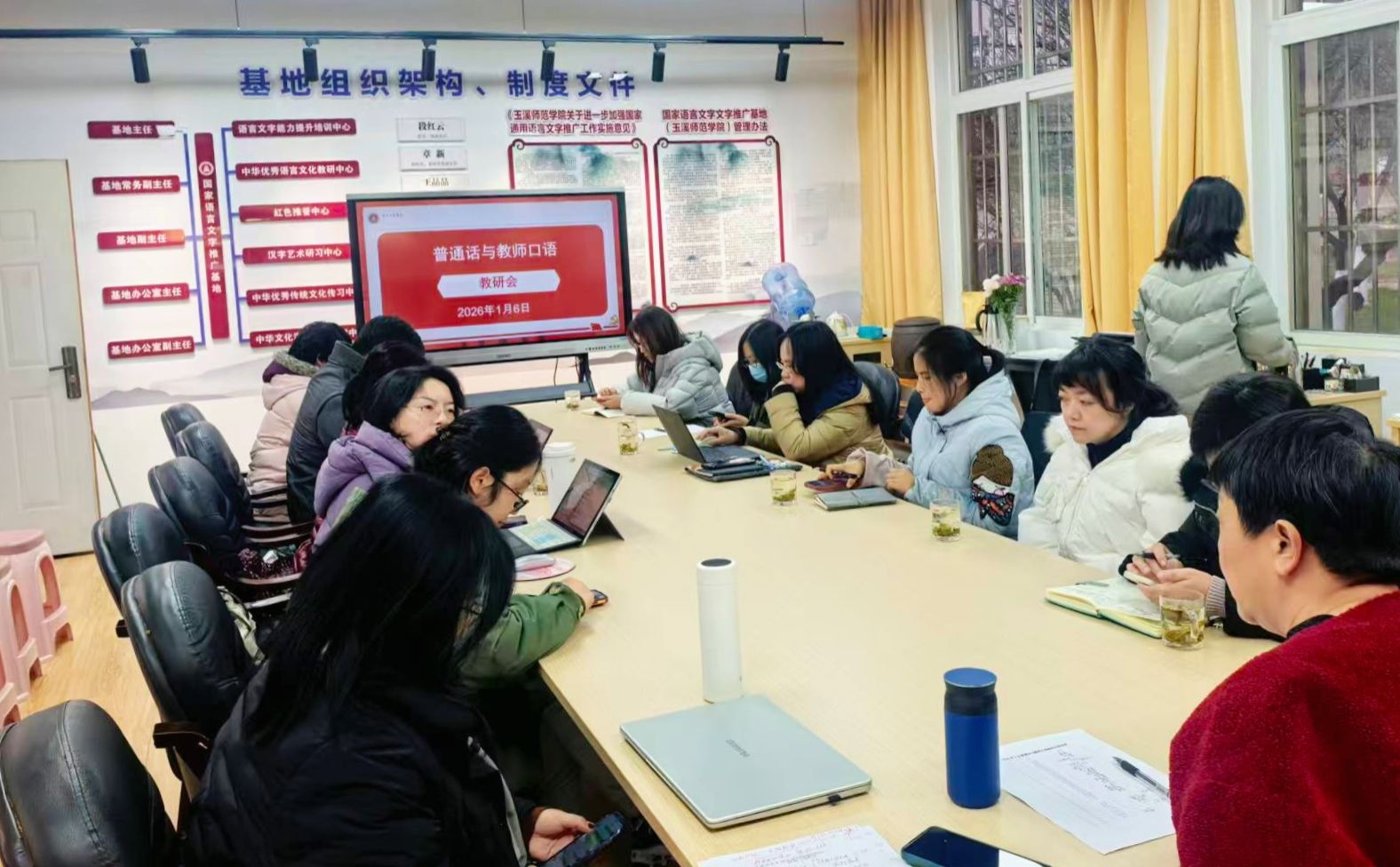 2026年1月6日下午,学校《普通话与教师口语》教研会在三元楼203语委办公室召开。本次会议由语委办主任曹冰雪主持,全体普通话测试员及任课教师参会,围绕普通话教学与测试工作开展专题研讨与学习。
