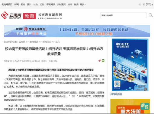 【云南网】校地携手开展教师普通话能力提升培训 玉溪师范学院助力提升地方教学质量