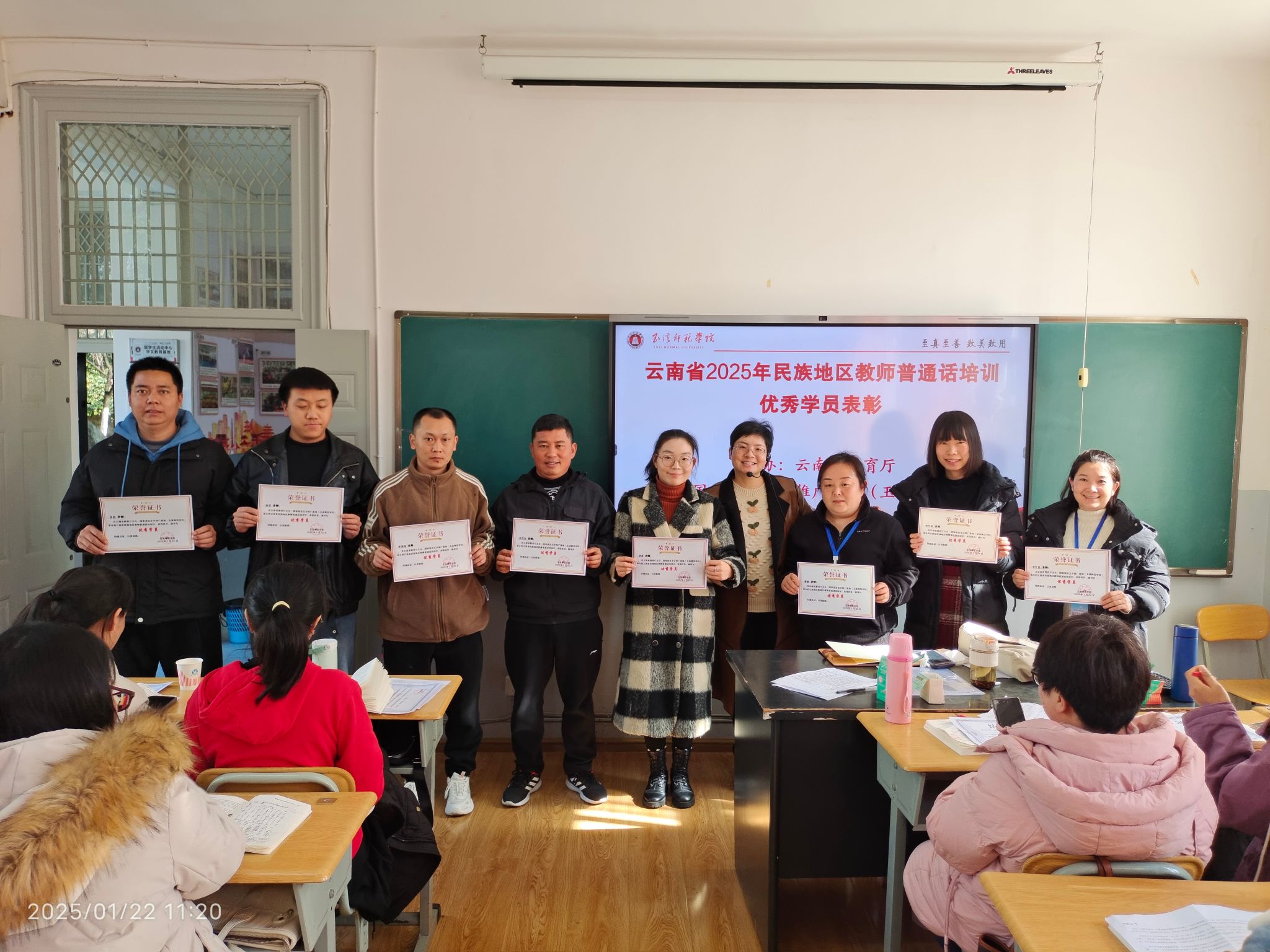 1月22日举行了结业表彰仪式,为学员颁发结业证书,对培训期间表现突出的优秀学员进行了表彰。全体参训学员对本次培训给予高度评价,对玉溪师范学院授课教师团队和大学生志愿者表示衷心感谢,为期10天的培训圆满结束。