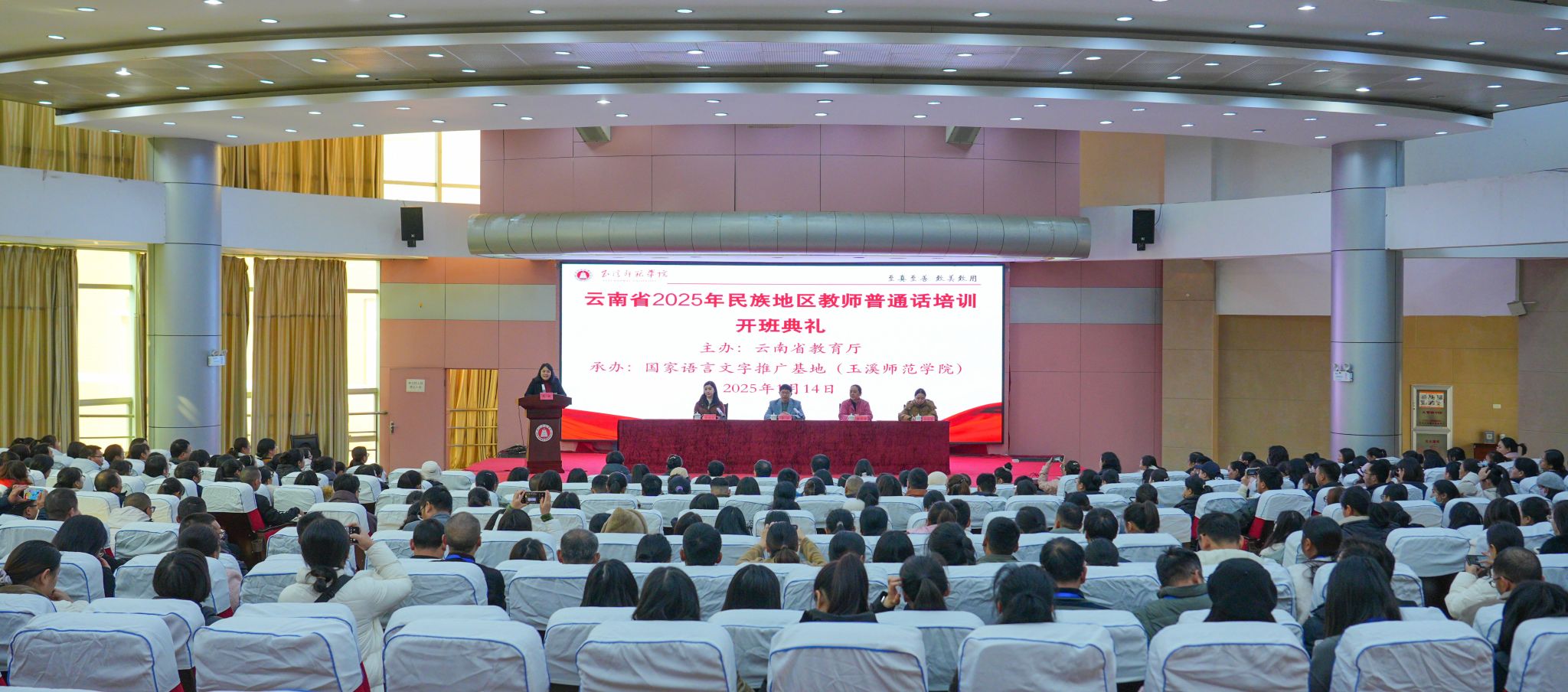 国务院办公厅印发的《关于全面加强新时代语言文字工作的意见》中强调,要加强民族地区教师国家通用语言文字教育教学能力培训,提高教师国家通用语言文字应用能力。为贯彻落实教育部、国家语委对教师普通话的等级要求,做好民族地区教师普通话培训工作,1月13日-22日,由云南省教育厅主办,国家语言文字推广基地(玉溪师范学院)承办,文山州、玉溪市、普洱市、红河州教体局协办的2024年民族地区教师普通话培训在玉溪师范学院顺利举办。
