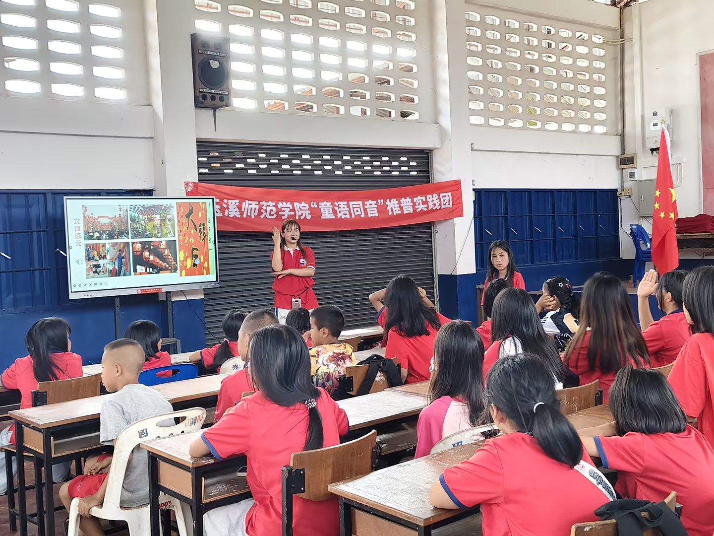 为认真贯彻教育部《关于进一步加强语言文字工作的意见》精神,积极响应“一带一路”倡议,推动中华优秀传统文化国际传播,玉溪师范学院教师教育学院“童语同音”推普实践团以语言为桥梁,以文化为纽带,于3月5日至8日,在泰国清莱府复兴小学开展了为期三天的“童语同音 筑梦未来”文化交流活动。活动紧扣“语言为根,文化为魂”理念,通过沉浸式语言学习和文化体验,让泰国学生在趣味互动中感受普通话的独特魅力,深化对中华文化的理解与认同,为中泰友好交流注入新的活力。